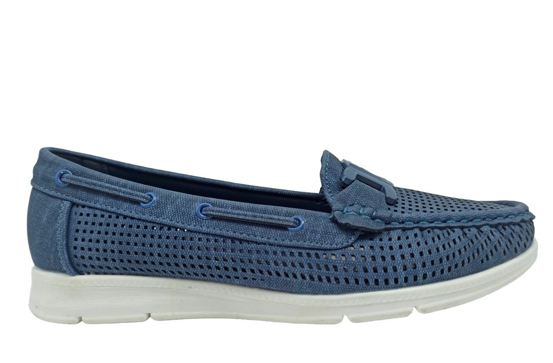 Scarpe da Donna Mocassini Laura Biagiotti 8469 Colore Blu e Beige Tacco Basso 2,3 cm Impreziositi con fibbia centrale Casual Eleganti Sportivi Alla Moda da Passeggio di Tendenza Glamour Tomaia in Ecopelle Traforata Interno con Morbido Cuscinetto per un Comfort Ideale Chiusura da infilare Slip On Primavera Estate Autunno