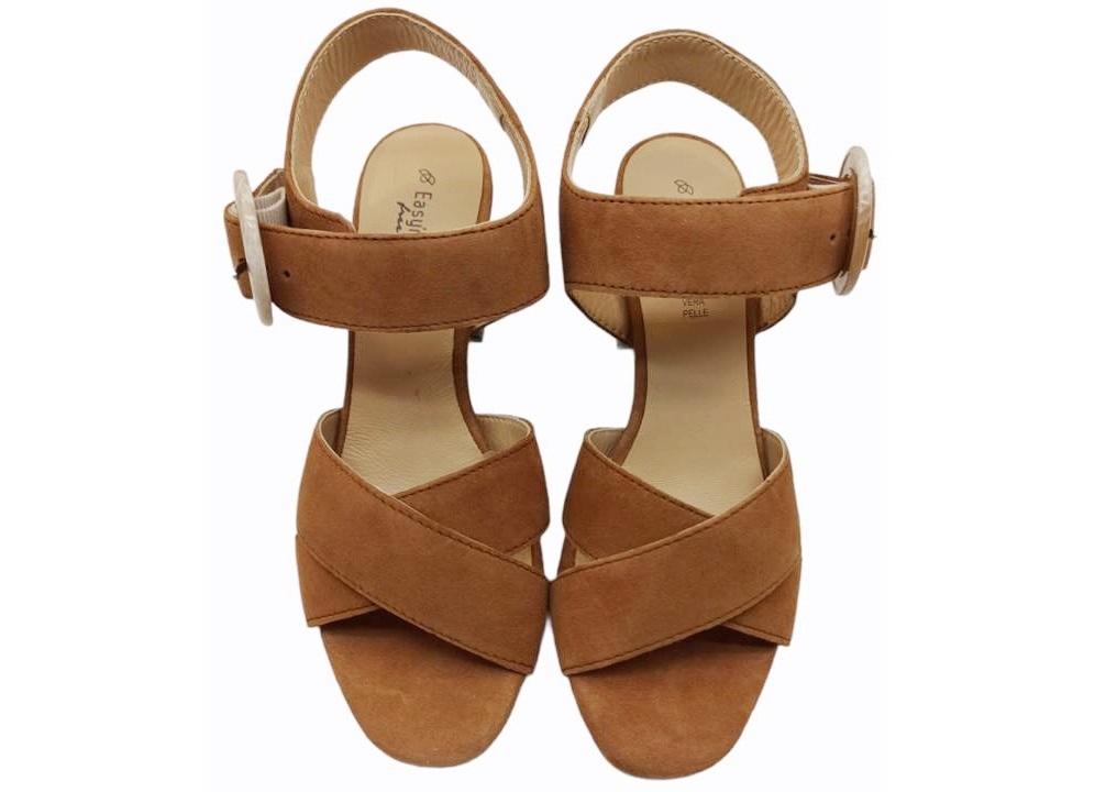 Sandali da Donna Easy'nRose 737-003 Cuoio. Scarpe da donna eleganti e versatili, perfette per l'estate con tomaia in vera pelle scamosciata, morbida e traspirante. Il design è raffinato e femminile, pensato per garantire comfort e stile anche nelle giornate più calde. Dotati di un tacco medio da 8,3 cm, comodo e stabile, ideale per ammortizzare le sollecitazioni del terreno. Il cuscinetto sotto la pianta del piede assicura un’ottima calzata, rendendo questi sandali perfetti per chi desidera coniugare eleganza e benessere. Chiusura con cinturino alla caviglia per una calzata sicura. Leggeri e flessibili, si abbinano facilmente a jeans, shorts, abiti estivi, pantaloni in lino o a palazzo. Perfetti per un look casual da giorno, un aperitivo serale o un outfit safari chic, adatti a uno stile femminile e glamour