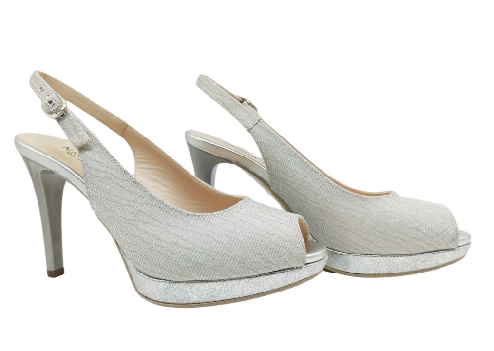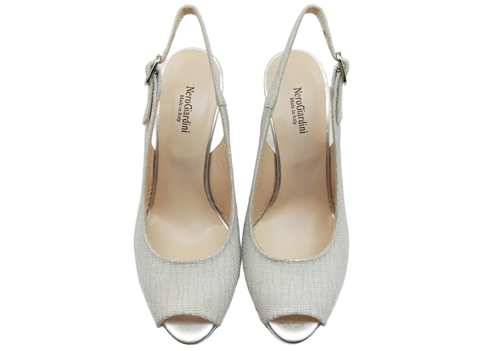 Sandalo da Donna Nero Giardini E218322DE 100 Colore Nero e Ghiaccio Chiusura con Cinturino alla Caviglia Slingback open toe tecnico glitterato in pelle laminata. NeroGiardini azienda leader nella produzione artigianale Made in Italy propone queste Scarpe per l'Estate con tomaia glitterata Altezza tacco alto 9,5cm e plateau 1,5 cm in gomma per attutire le sollecitazioni del terreno, per chi non volesse rinunciare alla comodità dal Design Raffinato. Comode Casual Eleganti Leggere alla Moda Glamour di Tendenza da Passeggio Sexy da indossare anche con un jeans, un pantaloncino-shorts, un abito o dei pantaloni in lino, con dei pantaloni larghi o a palazzo, per un look giornaliero, da aperitivo, ideale anche per un look safari chic, femme, femminino, mujer, Colore perfetto con l'abbronzatura, per un outfit ultra femminile.