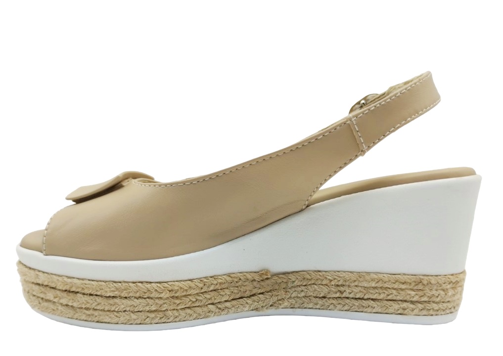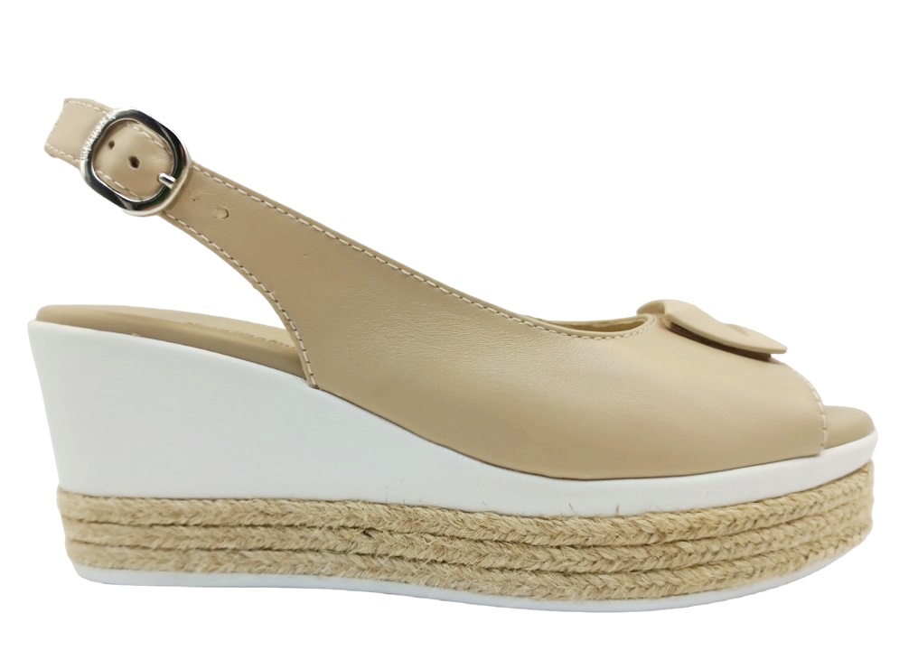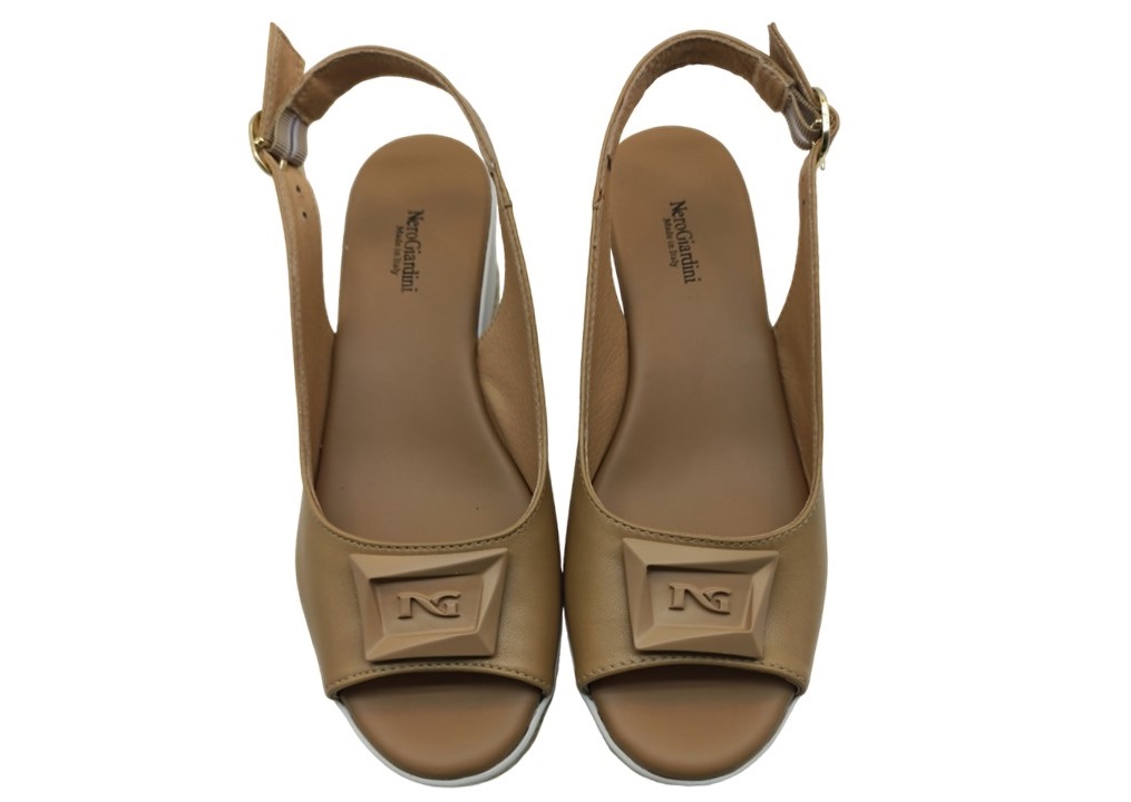 Sandali da Donna Nero Giardini E307715D Cuoio Sabbia Scarpe con Zeppa Alta 7 cm e Plateau di 3,5 cm Comode Casual Eleganti Leggere alla Moda Glamour di Tendenza da Passeggio Sexy. NeroGiardini azienda leader nella produzione artigianale Made in Italy propone queste Scarpe per l'Estate con Tomaia in Vera Pelle.  La zeppa alleggerita è di colore bianco con parte in corda color beige, mentre il cuscinetto sotto la pianta la rende molto confortevole. Chiusura con Cinturino alla Caviglia. Da indossare anche con un jeans, un pantaloncino-shorts, un abito o dei pantaloni in lino, con dei pantaloni larghi o a palazzo, per un look giornaliero, da aperitivo, ideale anche per un look safari, chic, femme, femminino, mujer, per un outfit ultra femminile.
