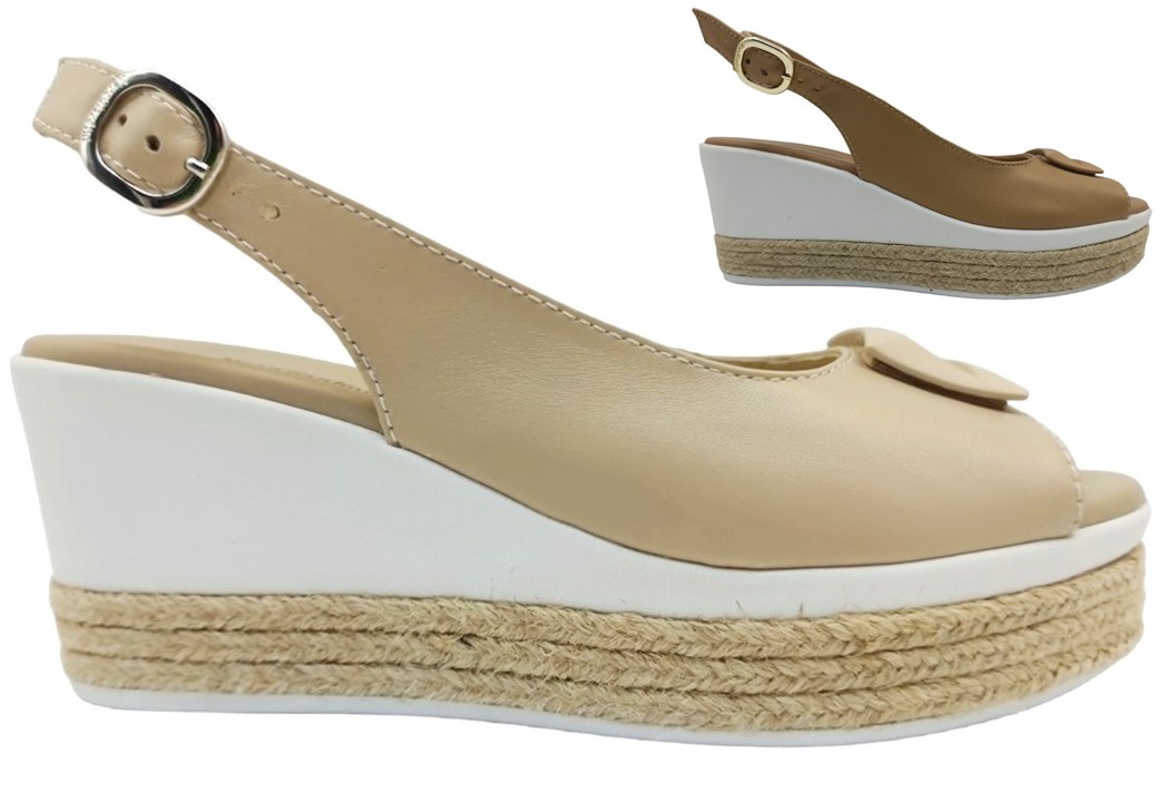 Sandali da Donna Nero Giardini E307715D Cuoio Sabbia Scarpe con Zeppa Alta 7 cm e Plateau di 3,5 cm Comode Casual Eleganti Leggere alla Moda Glamour di Tendenza da Passeggio Sexy. NeroGiardini azienda leader nella produzione artigianale Made in Italy propone queste Scarpe per l'Estate con Tomaia in Vera Pelle.  La zeppa alleggerita è di colore bianco con parte in corda color beige, mentre il cuscinetto sotto la pianta la rende molto confortevole. Chiusura con Cinturino alla Caviglia. Da indossare anche con un jeans, un pantaloncino-shorts, un abito o dei pantaloni in lino, con dei pantaloni larghi o a palazzo, per un look giornaliero, da aperitivo, ideale anche per un look safari, chic, femme, femminino, mujer, per un outfit ultra femminile.