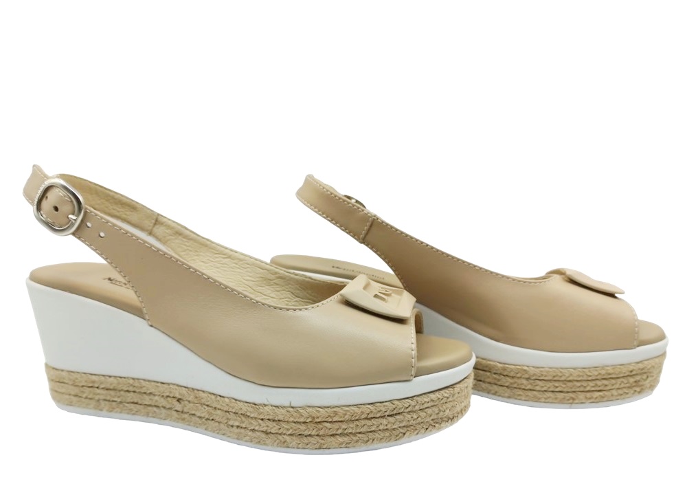 Sandali da Donna Nero Giardini E307715D Cuoio Sabbia Scarpe con Zeppa Alta 7 cm e Plateau di 3,5 cm Comode Casual Eleganti Leggere alla Moda Glamour di Tendenza da Passeggio Sexy. NeroGiardini azienda leader nella produzione artigianale Made in Italy propone queste Scarpe per l'Estate con Tomaia in Vera Pelle. La zeppa alleggerita è di colore bianco con parte in corda color beige, mentre il cuscinetto sotto la pianta la rende molto confortevole. Chiusura con Cinturino alla Caviglia. Da indossare anche con un jeans, un pantaloncino-shorts, un abito o dei pantaloni in lino, con dei pantaloni larghi o a palazzo, per un look giornaliero, da aperitivo, ideale anche per un look safari, chic, femme, femminino, mujer, per un outfit ultra femminile.