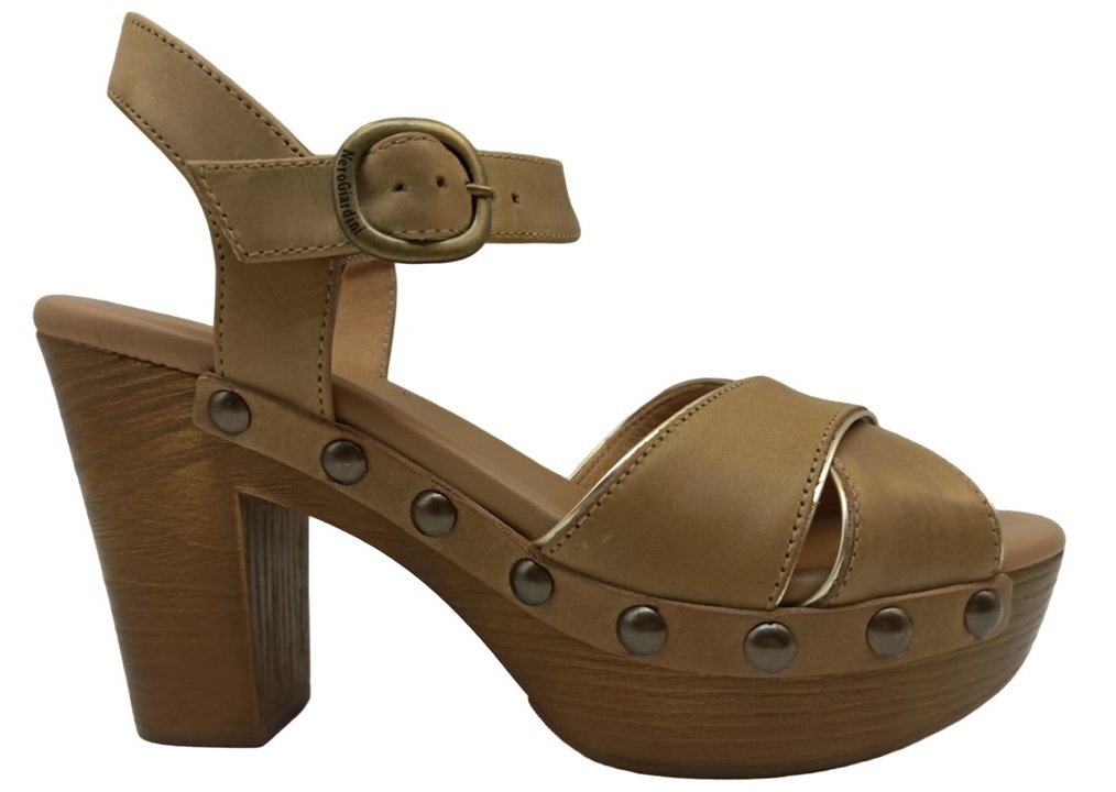Sandali Zoccoli da Donna Nero Giardini E307790D Cuoio Sabbia.  Nero Giardini azienda leader nella produzione artigianale Made in Italy propone queste Scarpe Zoccoli per l'Estate con fasce incrociate in pelle morbidissima con chiusura con cinturino alla caviglia. Fondo effetto legno con Tacco alto 9,5cm e plateau 3,5 cm per chi non volesse rinunciare all’altezza ma anche alla comodità dal Design Raffinato. Comode Casual Eleganti Leggere alla Moda Glamour di Tendenza con fascino retrò da Passeggio Sexy da indossare anche con un jeans, un pantaloncino-shorts, un abito o dei pantaloni in lino bianco, con dei pantaloni larghi o a palazzo, per un look giornaliero, da aperitivo, ideale anche per un look safari chic, femme, femminino, mujer, Colore perfetto con l'abbronzatura, per un outfit ultra femminile.
