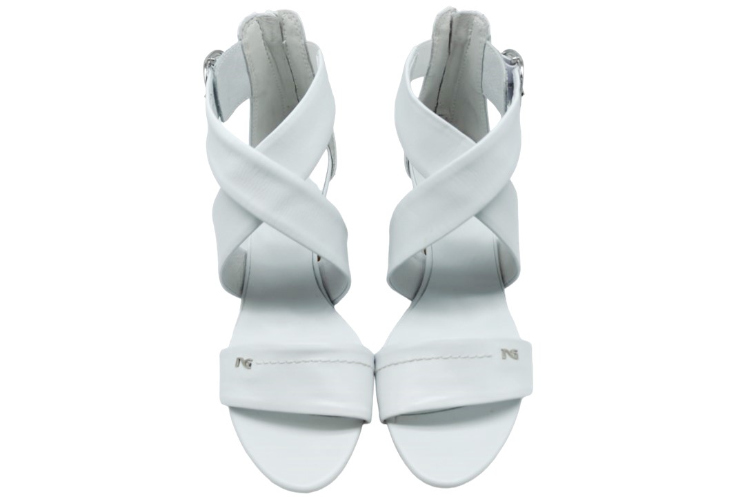 Sandali da Donna Nero Giardini E410380D 707 Bianco. Chiusura con zip al tallone, fibbia ed elastico laterale. NeroGiardini azienda leader nella produzione artigianale Made in Italy propone queste Scarpe per l'Estate in pelle morbidissima al tallone e sulla dita con con fasce incrociate in pelle sul collo. Tacco alto 7 cm e plateau in gomma per attutire le sollecitazioni del terreno, per chi non volesse rinunciare alla comodità ma dal Design Raffinato. Comode Casual Eleganti Leggere alla Moda Glamour di Tendenza da Passeggio Sexy da indossare anche con un jeans, un pantaloncino-shorts, un abito o dei pantaloni in lino, con dei pantaloni larghi o a palazzo, per un look giornaliero, da aperitivo, ideale anche per un look safari chic, femme, femminino, mujer, Colore perfetto con l'abbronzatura, per un outfit ultra femminile.
