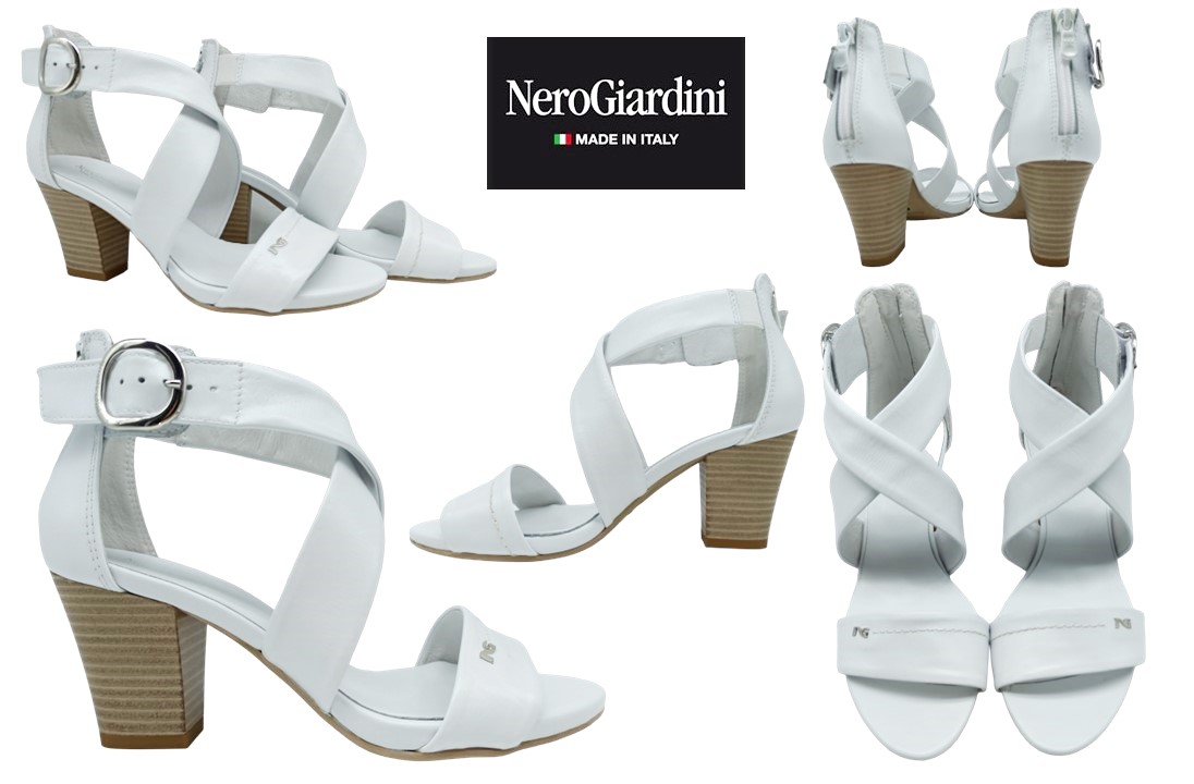 Sandali da Donna Nero Giardini E410380D 707 Bianco. Chiusura con zip al tallone, fibbia ed elastico laterale. NeroGiardini azienda leader nella produzione artigianale Made in Italy propone queste Scarpe per l'Estate in pelle morbidissima al tallone e sulla dita con con fasce incrociate in pelle sul collo. Tacco alto 7 cm e plateau in gomma per attutire le sollecitazioni del terreno, per chi non volesse rinunciare alla comodità ma dal Design Raffinato. Comode Casual Eleganti Leggere alla Moda Glamour di Tendenza da Passeggio Sexy da indossare anche con un jeans, un pantaloncino-shorts, un abito o dei pantaloni in lino, con dei pantaloni larghi o a palazzo, per un look giornaliero, da aperitivo, ideale anche per un look safari chic, femme, femminino, mujer, Colore perfetto con l'abbronzatura, per un outfit ultra femminile.