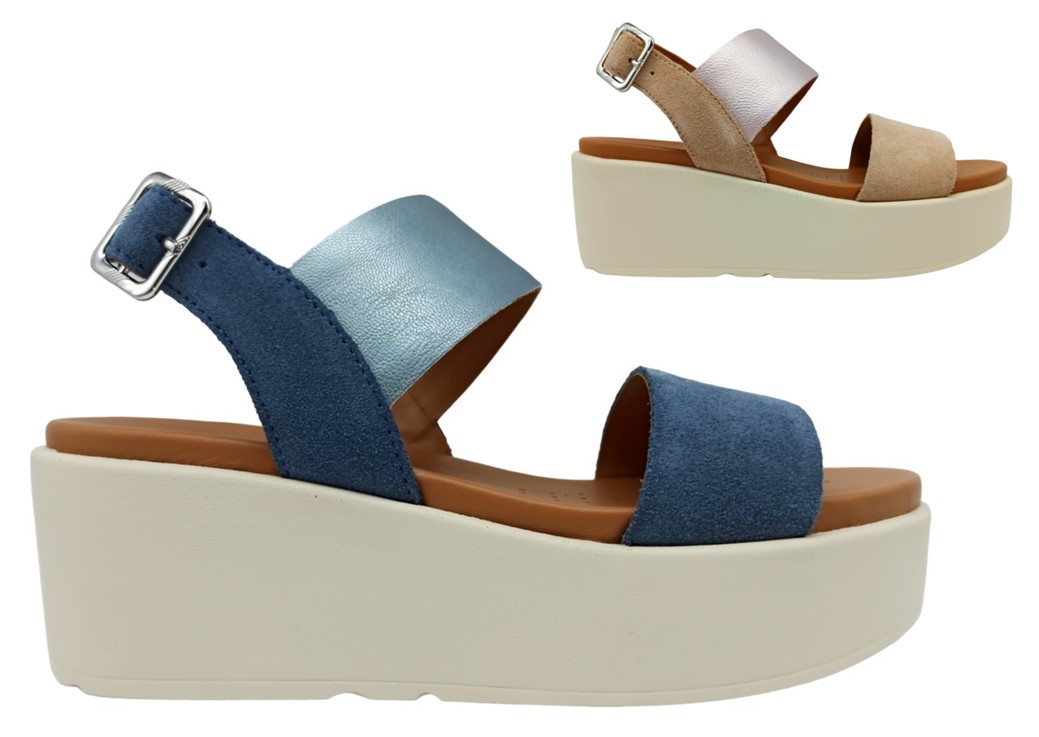 Sandali da Donna Geox D XAND 2.2S A D45M1A 022NF C4005 Colore Avio - Geox D XAND 2.2S A D45M1A 022BC C5QB5 Colore Champagne con fascia sul collo del piede cipria. Scarpe con Zeppa Media 7 cm e Plateau di 4,5 cm Comode Casual Eleganti Leggere alla Moda Glamour di Tendenza da Passeggio. Sandalo donna, confortevole e traspirante, con cinturino alla caviglia. Ideale per il tempo libero oltre a essere adatto a ogni occasione e in linea con le ultime tendenze, è pensato per offrire un benessere costante anche in caso di utilizzo prolungato.Traspirabilità della suola e benessere del piede sono assicurati dal sistema brevettato Geox. La suola platform in PU ha caratteristiche particolari di leggerezza, resistenza e durata.