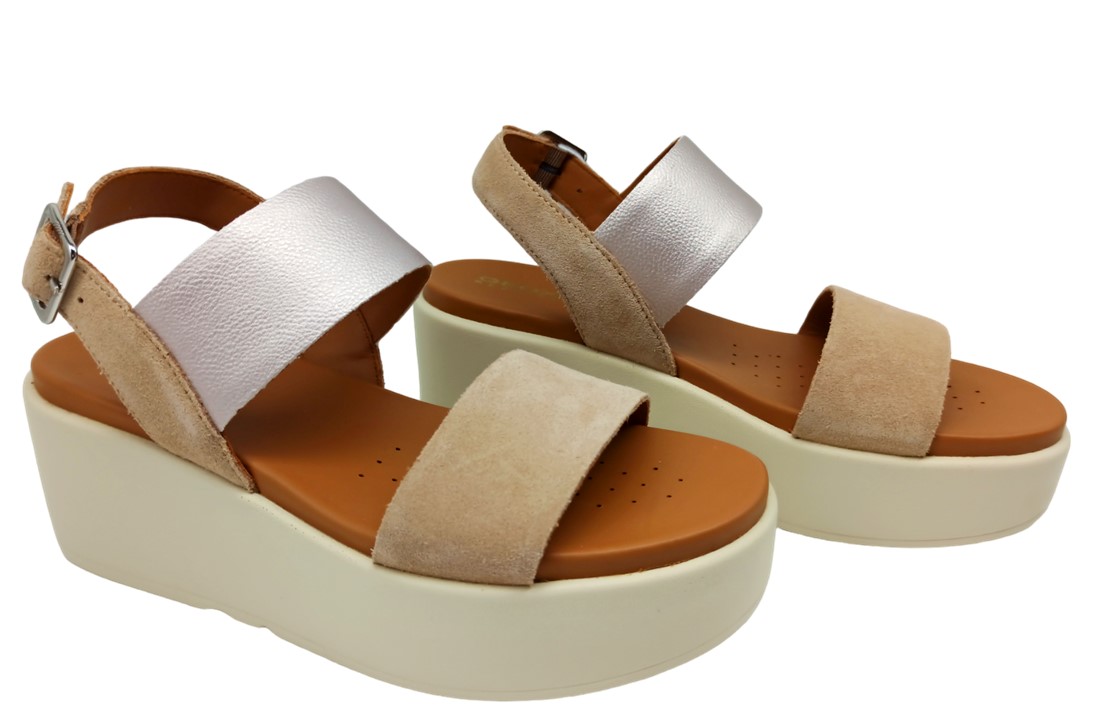 Sandali da Donna Geox D XAND 2.2S A D45M1A 022NF C4005 Colore Avio - Geox D XAND 2.2S A D45M1A 022BC C5QB5 Colore Champagne con fascia sul collo del piede cipria. Scarpe con Zeppa Media 7 cm e Plateau di 4,5 cm Comode Casual Eleganti Leggere alla Moda Glamour di Tendenza da Passeggio. Sandalo donna, confortevole e traspirante, con cinturino alla caviglia. Ideale per il tempo libero oltre a essere adatto a ogni occasione e in linea con le ultime tendenze, è pensato per offrire un benessere costante anche in caso di utilizzo prolungato.Traspirabilità della suola e benessere del piede sono assicurati dal sistema brevettato Geox. La suola platform in PU ha caratteristiche particolari di leggerezza, resistenza e durata.