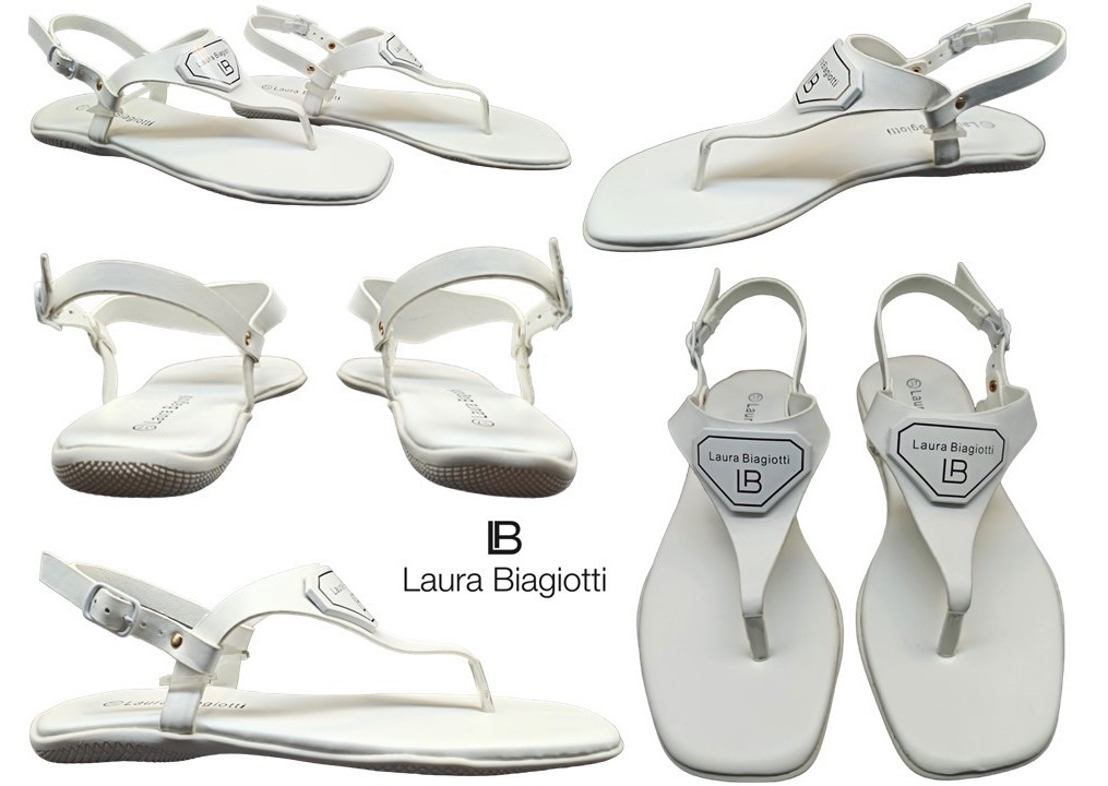 Sandali donna Laura Biagiotti 8040 scarpe infradito basse casual comode bianche