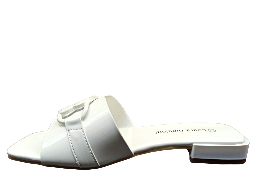 Sandali da Donna Laura Biagiotti 8043 Colore Bianco e Nude. Scarpe con Tacco Basso 2 cm Comode Casual Eleganti Leggere alla Moda Glamour di Tendenza da Passeggio Sexy. Laura Biagiotti propone queste scarpe belle, leggere flessibili per l'Estate con Tomaia in Similpelle. Tacco comodo per attutire le sollecitazioni del terreno, per chi non volesse rinunciare alla comodità dal Design Raffinato. Chiusura da Infilare. Da indossare anche con un jeans, un pantaloncino-shorts, un abito o dei pantaloni in lino, con dei pantaloni larghi o a palazzo, per un look giornaliero, da aperitivo, ideale anche per un look safari chic, femme, femminino, mujer, per un outfit ultra femminile.