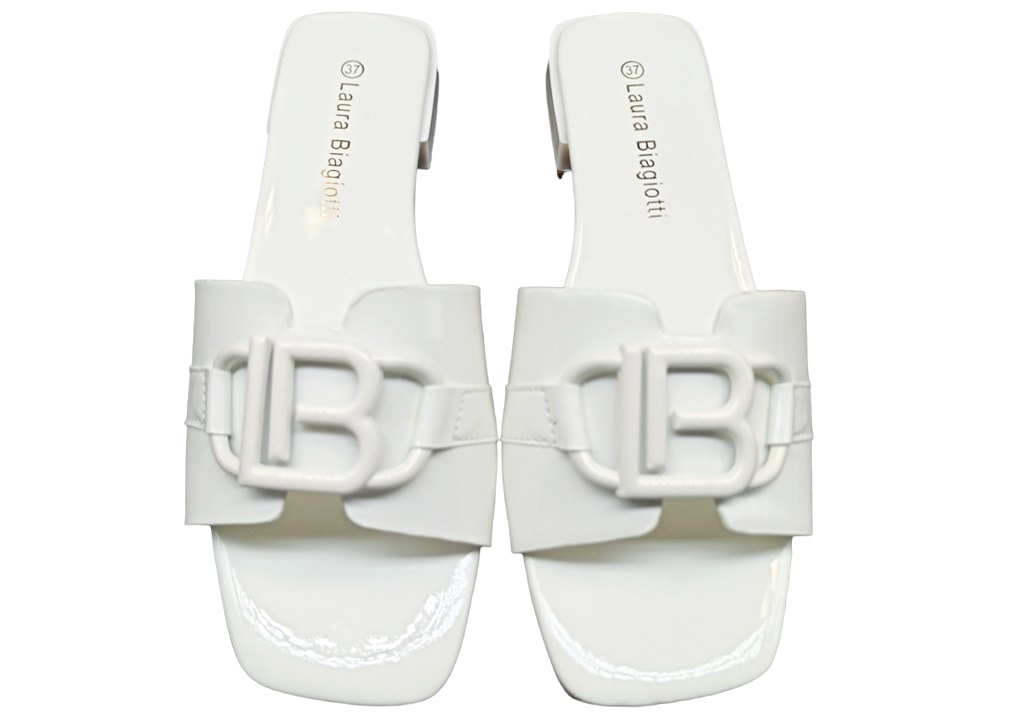 Sandali da Donna Laura Biagiotti 8043 Colore Bianco e Nude. Scarpe con Tacco Basso 2 cm Comode Casual Eleganti Leggere alla Moda Glamour di Tendenza da Passeggio Sexy. Laura Biagiotti propone queste scarpe belle, leggere flessibili per l'Estate con Tomaia in Similpelle. Tacco comodo per attutire le sollecitazioni del terreno, per chi non volesse rinunciare alla comodità dal Design Raffinato. Chiusura da Infilare. Da indossare anche con un jeans, un pantaloncino-shorts, un abito o dei pantaloni in lino, con dei pantaloni larghi o a palazzo, per un look giornaliero, da aperitivo, ideale anche per un look safari chic, femme, femminino, mujer, per un outfit ultra femminile.
