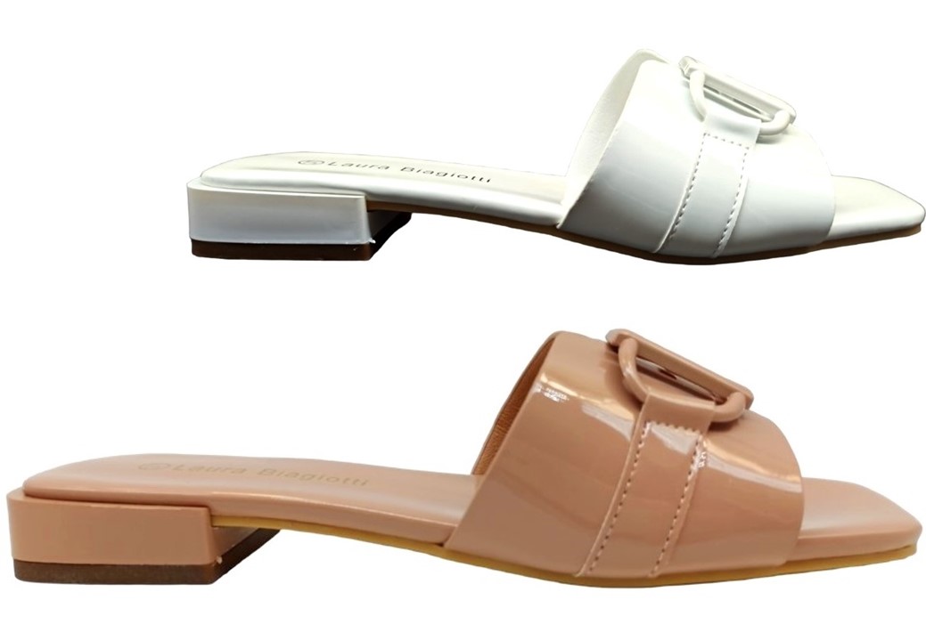 Sandali da Donna Laura Biagiotti 8043 Colore Bianco e Nude. Scarpe con Tacco Basso 2 cm Comode Casual Eleganti Leggere alla Moda Glamour di Tendenza da Passeggio Sexy. Laura Biagiotti propone queste scarpe belle, leggere flessibili per l'Estate con Tomaia in Similpelle. Tacco comodo per attutire le sollecitazioni del terreno, per chi non volesse rinunciare alla comodità dal Design Raffinato. Chiusura da Infilare. Da indossare anche con un jeans, un pantaloncino-shorts, un abito o dei pantaloni in lino, con dei pantaloni larghi o a palazzo, per un look giornaliero, da aperitivo, ideale anche per un look safari chic, femme, femminino, mujer, per un outfit ultra femminile.