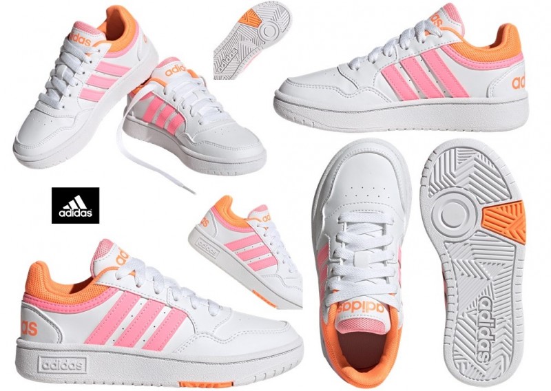 Scarpe da Bambina Bimba Adidas HOOPS 3.0 GZ9672 - GW0436 Bianco Sneakers Basse Sportive da Ginnastica Tennis Skateboarding, Basket, Basketball, Palestra e Allenamento, Scuola Casual per il Tempo Libero da Passeggio alla Moda Similpelle Chiusura con Lacci Stringhe con Plantare Estraibile Autunno Primavera Estate