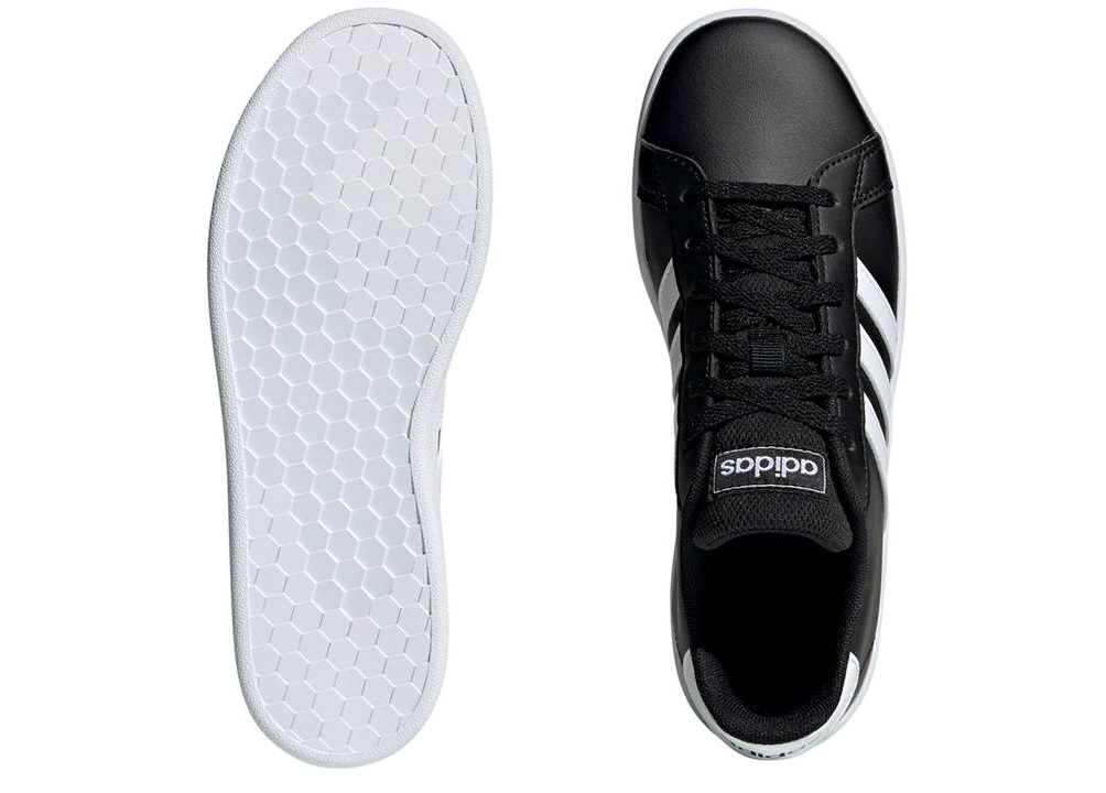 Scarpe da Donna Bambina ADIDAS GRAND COURT K EF0102 - GV7109 - GZ5258 Sneakers Colore Nero e Bianco Casual Comode Basse alla Moda Di Tendenza per il Tempo Libero Da Passeggio Chiusura con Stringhe Lacci Plantare Interno Estraibile Autunnale Invernale Primaverile Estivo