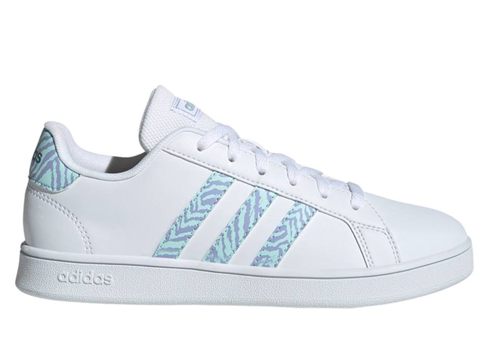 Scarpe da Donna Bambina ADIDAS GRAND COURT K EF0102 - GV7109 - GZ5258 Sneakers Colore Nero e Bianco Casual Comode Basse alla Moda Di Tendenza per il Tempo Libero Da Passeggio Chiusura con Stringhe Lacci Plantare Interno Estraibile Autunnale Invernale Primaverile Estivo