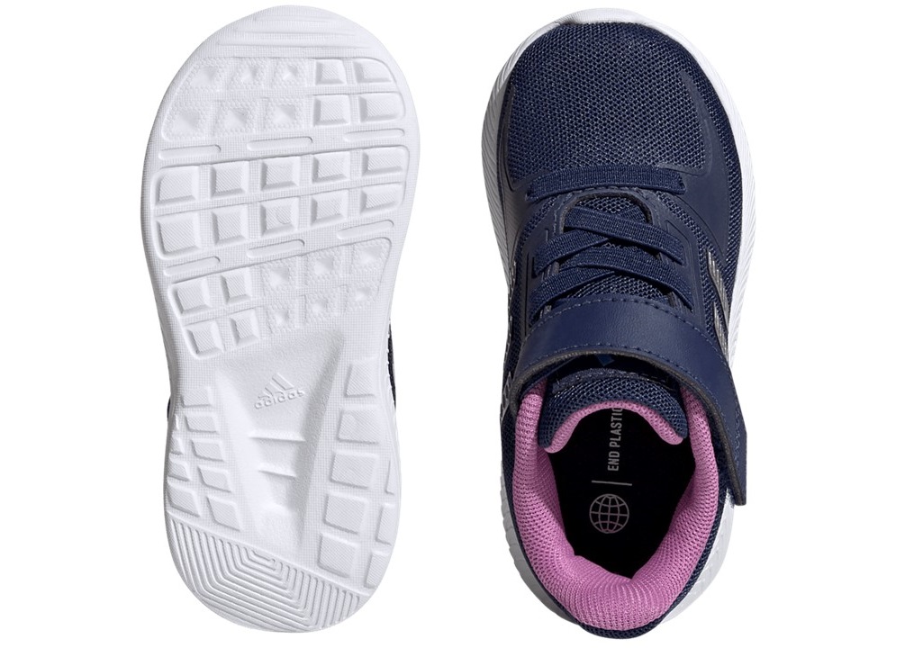 Scarpe Infant da Bambina Bimba Bambini Adidas RUNFALCON 2.0 I HR1405 Blu con profili viola. Sneakers basse sportive e casual, versatili per scuola, tempo libero e passeggiate. Perfette per attività sportive come ginnastica, palestra, allenamento, basket, skateboarding. Chiusura comoda con strappoe lacci elastici ideale per i più piccoli, Tomaia in Tessuto, Plantare estraibile per maggiore igiene e praticità.