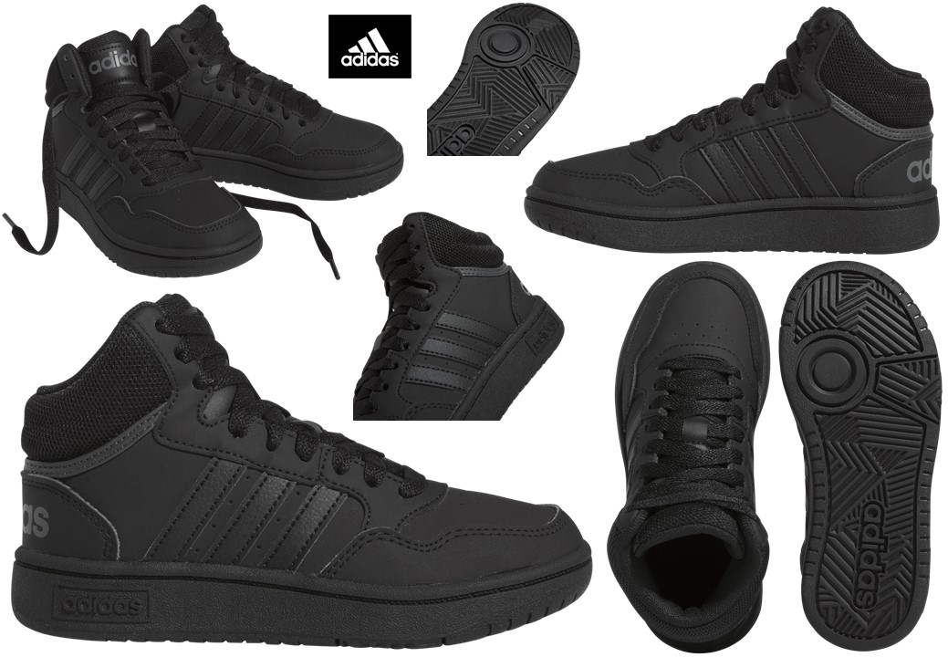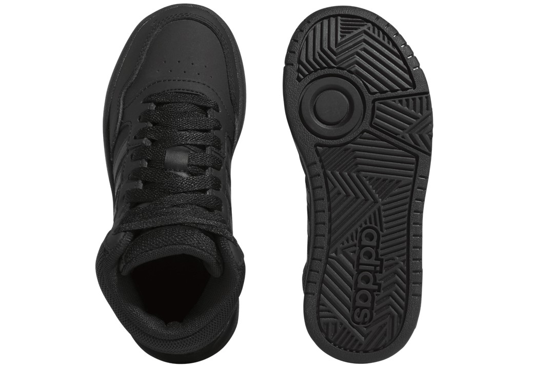 Scarpe da Bambino Adidas HOOPS MID 3.0 K HR0228 Colore Nero. Sneakers alte sportive e casual, versatili per scuola, tempo libero e passeggiate. Perfette per attività sportive come ginnastica, palestra, allenamento, basket, skateboarding. Chiusura con lacciTomaia in Similpelle, Plantare estraibile per maggiore igiene e praticità. Ideali per la stagione autunno/inverno