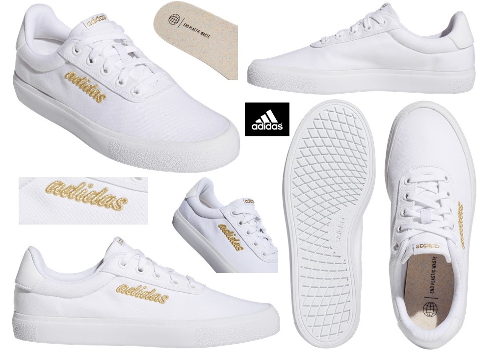 Scarpe da Tennis Donna Ragazza Adidas VULCRAID 3R GY5501 Colore Bianco con inserti oro Sneakers Basse Casual in Tessuto adatte ad ogni occasione. Sportive da Ginnastica Tennis Skateboarding, Basket, Basketball, Palestra e Allenamento, Scuola per il Tempo Libero da Passeggio alla Moda. Dotate di Chiusura con Lacci Stringhe per una calzata comoda e stabile, Struttura Morbida Intersuola Ammortizzata con Plantare Estraibile "end plastic waste" . Leggere e Traspiranti ideali per la stagione Primavera Estate