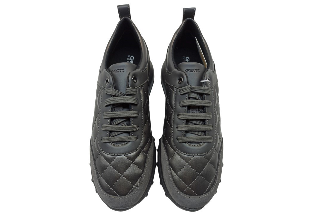 Scarpe da donna GEOX D ALLENIEE A D36LPA 0NFBC C9002 Colore Grigio. Sneakers basse da donna in colore grigio, dallo stile casual e attuale. La tomaia in pelle con lavorazione effetto trapuntato dona un tocco moderno e curato. Dotate di chiusura con lacci e plantare interno estraibile, offrono una calzata pratica e personalizzabile. Leggere e ammortizzate, assicurano comfort e traspirabilità durante tutta la giornata. Ideali per la stagione autunno/inverno e perfette per completare look glamour e di tendenza.