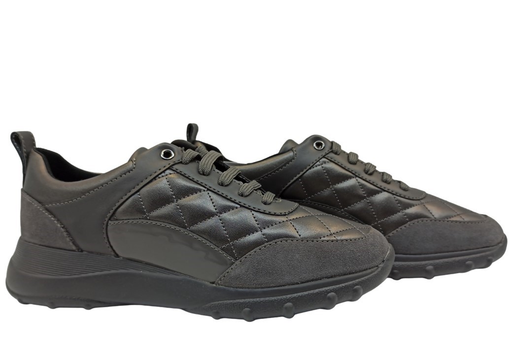 Scarpe da donna GEOX D ALLENIEE A D36LPA 0NFBC C9002 Colore Grigio. Sneakers basse da donna in colore grigio, dallo stile casual e attuale. La tomaia in pelle con lavorazione effetto trapuntato dona un tocco moderno e curato. Dotate di chiusura con lacci e plantare interno estraibile, offrono una calzata pratica e personalizzabile. Leggere e ammortizzate, assicurano comfort e traspirabilità durante tutta la giornata. Ideali per la stagione autunno/inverno e perfette per completare look glamour e di tendenza.