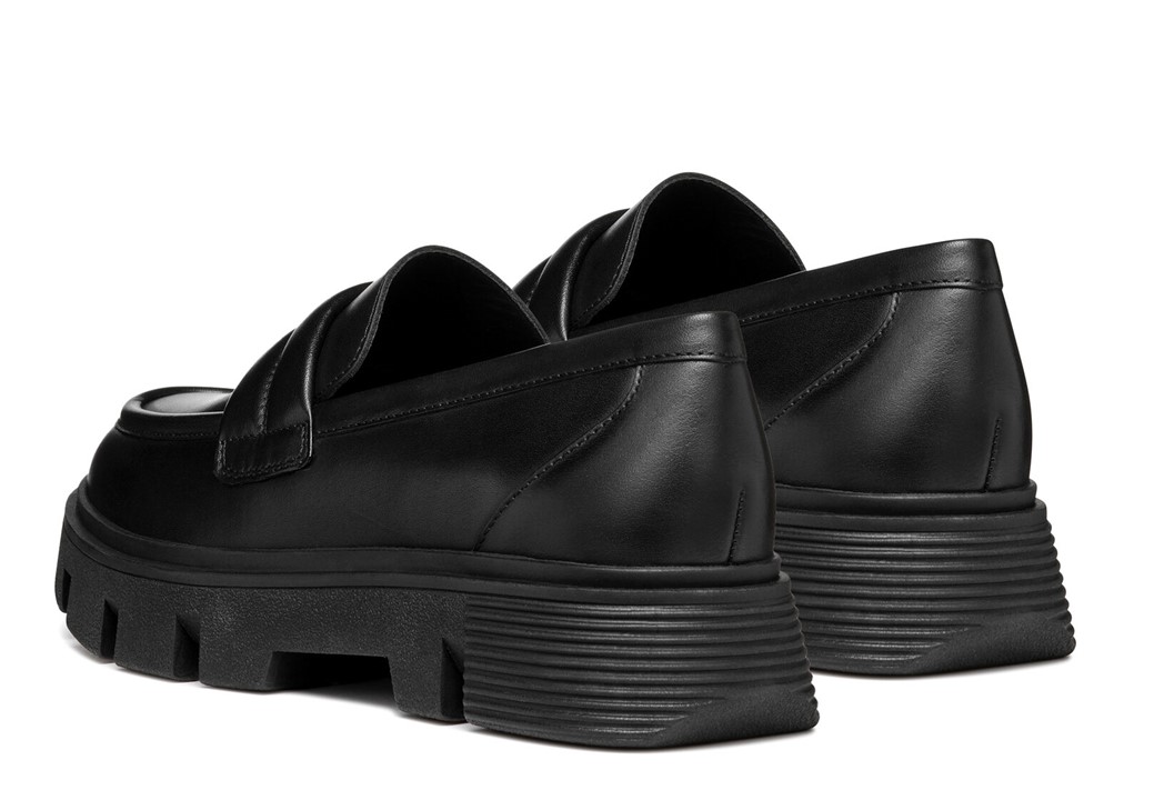 Scarpe da Donna Geox D46UAC 00043 C9999 D VILDE C Colore Nero. Mocassini da donna neri dallo stile elegante e versatile, perfetti per completare outfit casual o più curati. La tomaia in vera pelle e la calzata slip-on permettono di indossarli in un attimo, con comfort immediato. Il tacco basso da 4 cm con plateau da 3,5 cm offre una camminata stabile e comoda anche per tutta la giornata. Ideali per la stagione autunno/inverno, per l’ufficio e il tempo libero con un tocco di tendenza.