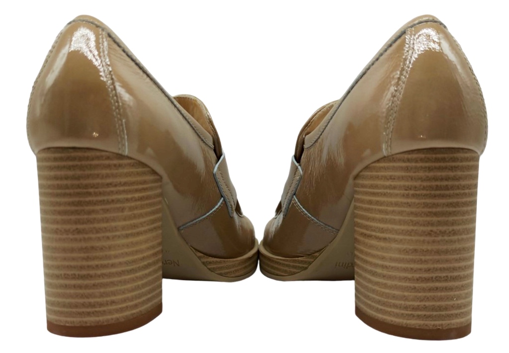 Scarpe da Donna Mocassini Nero Giardini E409600D 410 Colore Sabbia. Nero Giardini, eccellenza del Made in Italy e simbolo di qualità artigianale, propone questi mocassini estivi dal design sofisticato e contemporaneo. Realizzati in pelle lucida, sono caratterizzati da una silhouette elegante senza chiusura. Il tacco alto da 8 cm slancia la figura garantendo al tempo stesso praticità e stabilità, ideale per chi desidera coniugare stile e comodità in ogni occasione.Versatili e di tendenza, questi mocassini si abbinano perfettamente a jeans, shorts, abiti estivi, pantaloni in lino o a palazzo, adattandosi sia a look casual da giorno che ad outfit più chic per l’aperitivo o la sera.