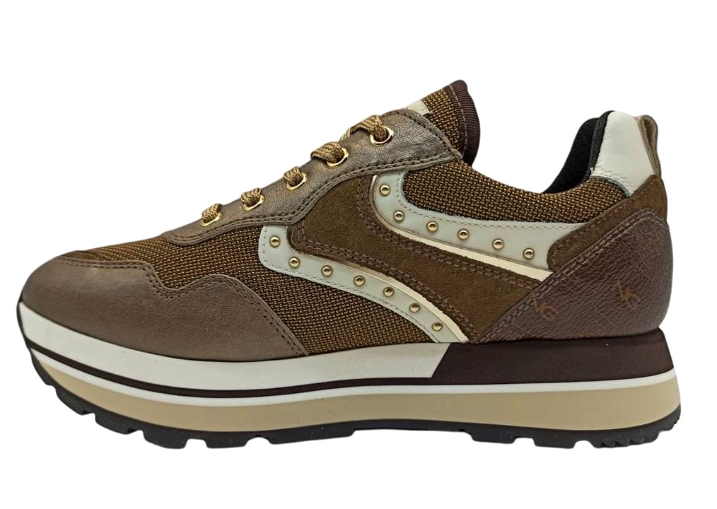 Scarpe da donna Nero Giardini I116940D 100 - I116941D 322 Colore Nero e Verdegris impreziosite con borchiette Sneakers Platform Basse Casual Sportive Comode alla Moda Glamour da Passeggio di Tendenza con Zeppa Tomaia in Vera Pelle Tessile Plantare Interno Estraibile Chiusura con Lacci Stringhe Made in Italy Autunno Inverno