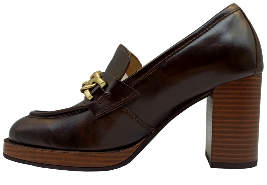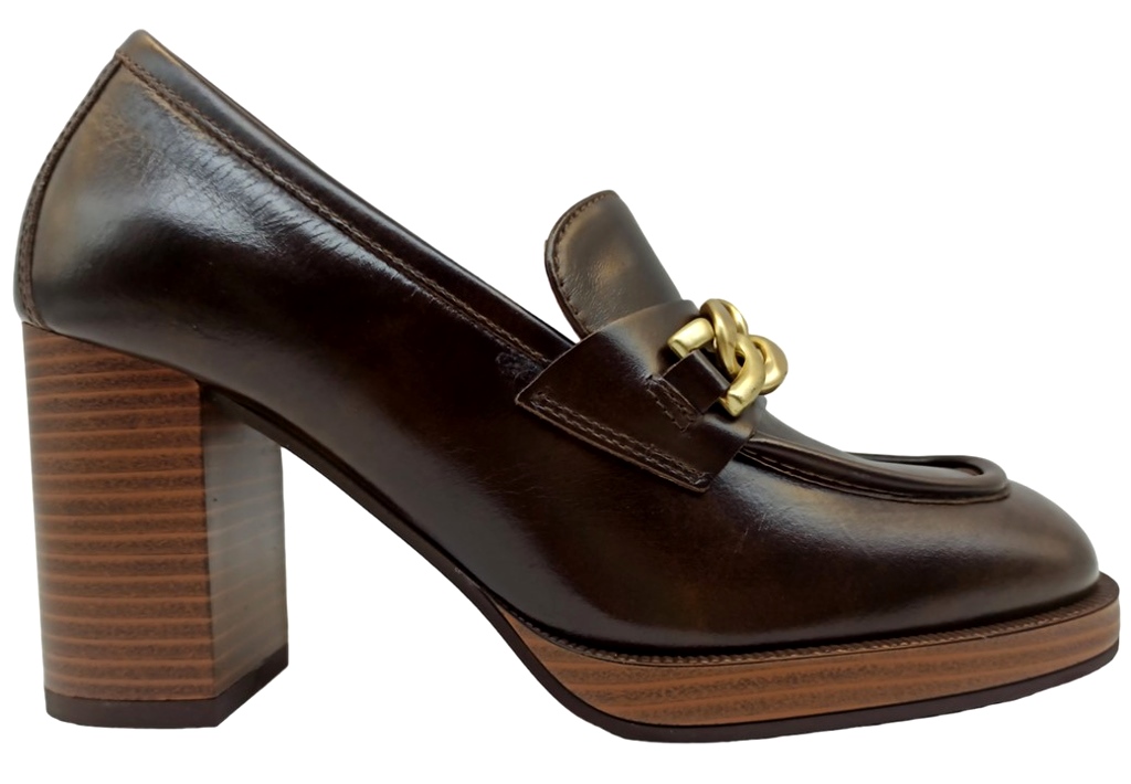 Scarpe da Donna Mocassini Nero Giardini I305060D 300 Colore Testa di Moro. Mocassini in vera pelle color testa di moro, pensati per unire stile e comodità. Il tacco medio da 8 cm con plateau da 1,5 cm slancia la figura mantenendo una calzata stabile. La catenella centrale color oro illumina il design con un dettaglio elegante e contemporaneo. Modello a infilare, ideale per look casual-chic e outfit di stagione, perfetto per autunno e inverno. Made in Italy, con la cura e la qualità artigianale tipiche di Nero Giardini.