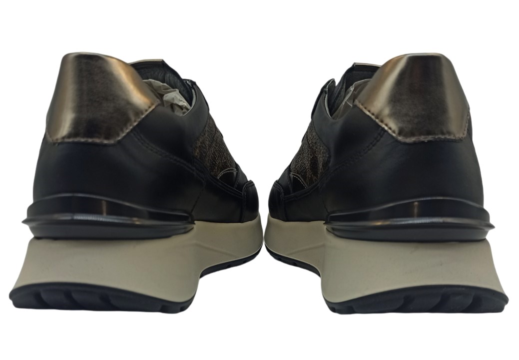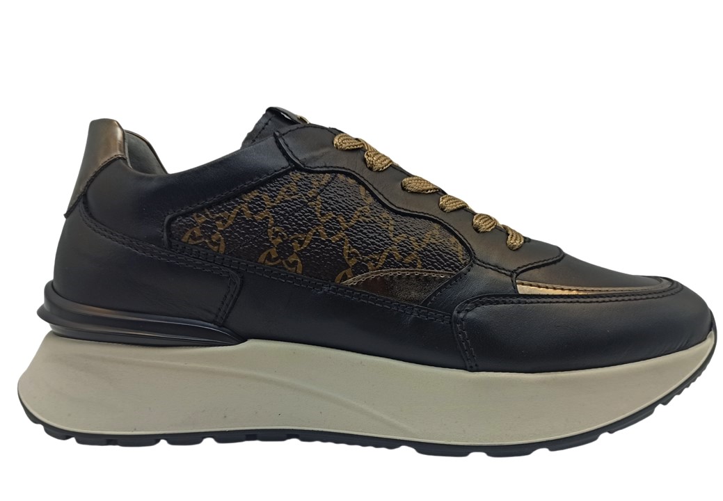 Scarpe da donna Nero Giardini I411545D 100 Colore Nero. NeroGiardini, sinonimo di qualità artigianale Made in Italy, presenta queste sneakers platform basse dal design contemporaneo e glamour. Realizzate in vera pelle e tessuto tecnico, uniscono resistenza e leggerezza, ideali per la stagione autunno/inverno.Dotate di zeppa integrata che dona slancio alla silhouette, offrono il massimo comfort grazie al plantare interno estraibile e alla chiusura con lacci regolabili. La calzata è comoda e pratica, perfetta per l’uso quotidiano.Versatili e di tendenza, si abbinano facilmente a look casual, sportivi o urban chic, rendendole le compagne ideali per il tempo libero, le passeggiate e la vita in città. Un modello che coniuga moda, comfort e stile italiano, pensato per la donna dinamica e femminile che non vuole rinunciare all’eleganza.