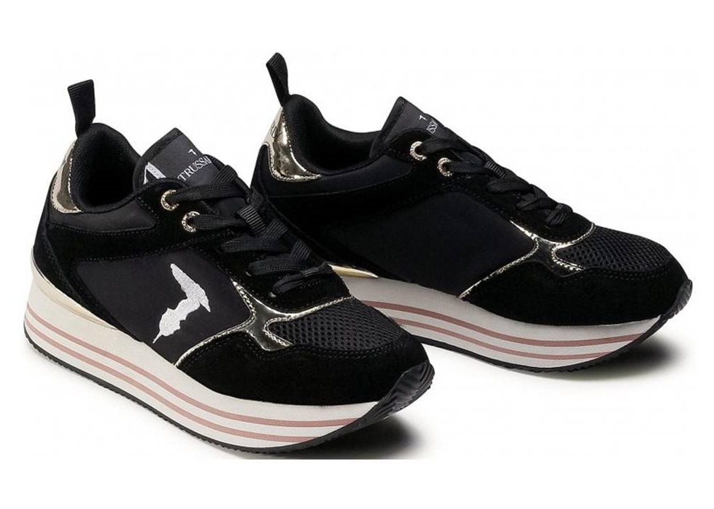 Scarpe da donna Trussardi Jeans 79A00541 K316 Colore Nero Le sneakers platform Trussardi Jeans uniscono stile e comfort, con un design moderno e versatile, ideale per accompagnare i tuoi look quotidiani in ogni stagione. Sneakers platform basse, sportive e glamour perfette per passeggiate, tempo libero e abbinamenti casual alla moda. Tomaia in pelle scamosciata, camoscio e tela per un mix di resistenza e traspirabilità, plantare interno estraibile per una calzata personalizzata. Adatte per primavera, estate, autunno e inverno