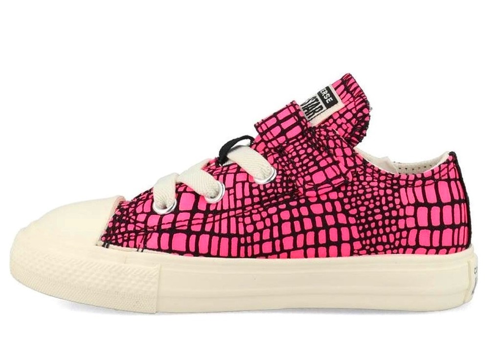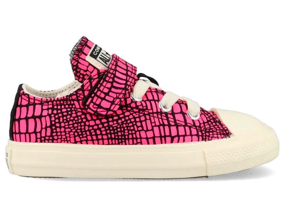 Scarpe da Bambina Bimba Infant Converse Junior 770163C Colore Fucsia-Nero-Bianco Sneakers Chuck Taylor All Star Croc Paint Fucsia Sportive Basse Casual Comode alla Moda da Passeggio Tempo Libero di Tendenza Chiusura con Strappo e Lacci Elastici Tomaia in Tessuto con stampa effetto cocco Primavera Estate