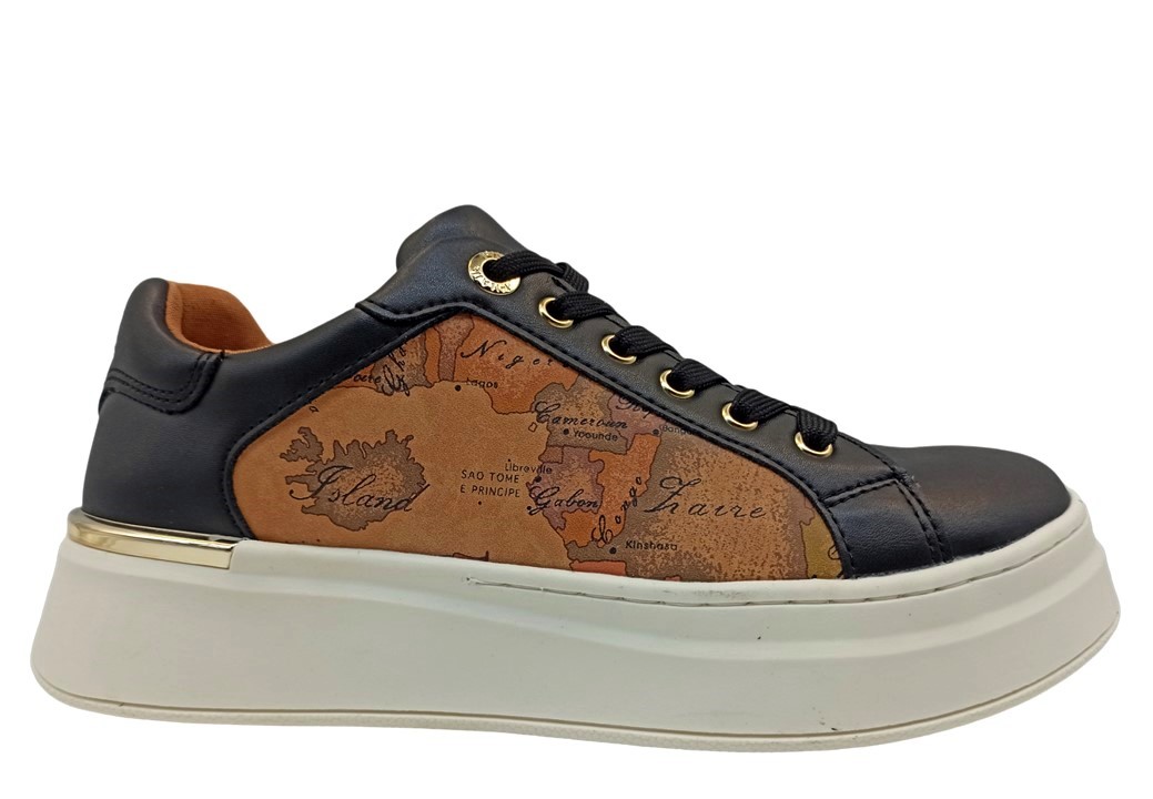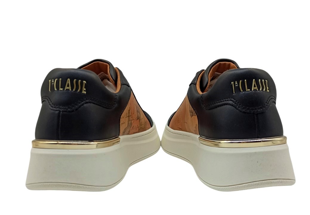 Scarpe da donna Alviero Martini 1 Classe Junior N 1980 0289 X550 Colore Nero Cuoio. Sneakers platform basse in colore nero e cuoio con iconica stampa Geo, dallo stile casual e alla moda. Leggere e comode, ideali per il tempo libero e le passeggiate. Realizzate in similpelle con chiusura a lacci e plantare interno estraibile in pelle per un comfort ottimale. Perfette per le stagioni autunno e inverno.