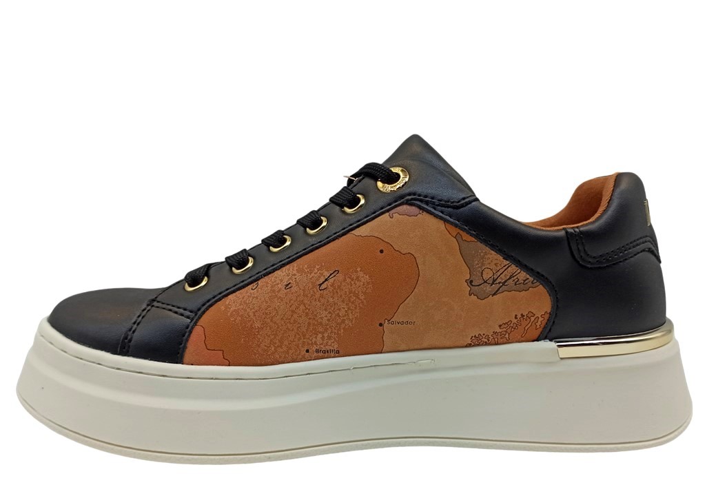 Scarpe da donna Alviero Martini 1 Classe Junior N 1980 0289 X550 Colore Nero Cuoio. Sneakers platform basse in colore nero e cuoio con iconica stampa Geo, dallo stile casual e alla moda. Leggere e comode, ideali per il tempo libero e le passeggiate. Realizzate in similpelle con chiusura a lacci e plantare interno estraibile in pelle per un comfort ottimale. Perfette per le stagioni autunno e inverno.