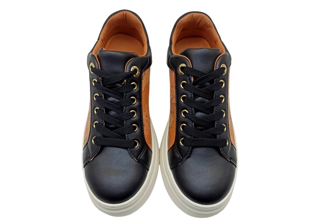Scarpe da donna Alviero Martini 1 Classe Junior N 1980 0289 X550 Colore Nero Cuoio. Sneakers platform basse in colore nero e cuoio con iconica stampa Geo, dallo stile casual e alla moda. Leggere e comode, ideali per il tempo libero e le passeggiate. Realizzate in similpelle con chiusura a lacci e plantare interno estraibile in pelle per un comfort ottimale. Perfette per le stagioni autunno e inverno.