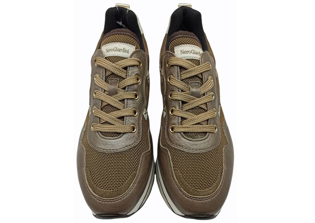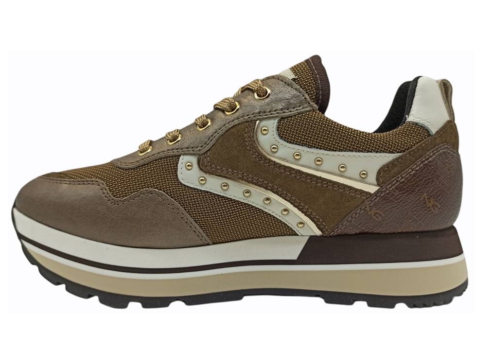 Scarpe da donna Nero Giardini I116941D 322 Colore Verdegris con profili bianchi e oro impreziosite con borchiette Sneakers Platform Basse Casual Sportive Comode alla Moda Glamour da Passeggio di Tendenza con Zeppa Tomaia in Vera Pelle Tessile Plantare Interno Estraibile Chiusura con Lacci Stringhe Made in Italy Autunno Inverno