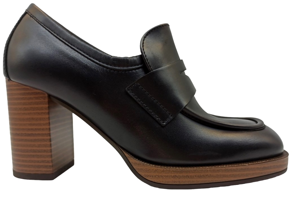 Scarpe da Donna Nero Giardini I308190D 100 Colore Nero Black. Eleganti mocassini in vera pelle, realizzati in Italia, con tacco medio da 8 cm e plateau da 1,5 cm. Modello casual-chic, perfetto per look glamour e di tendenza, ideali per passeggiate e per completare outfit autunnali e invernali. Comoda chiusura a infilare