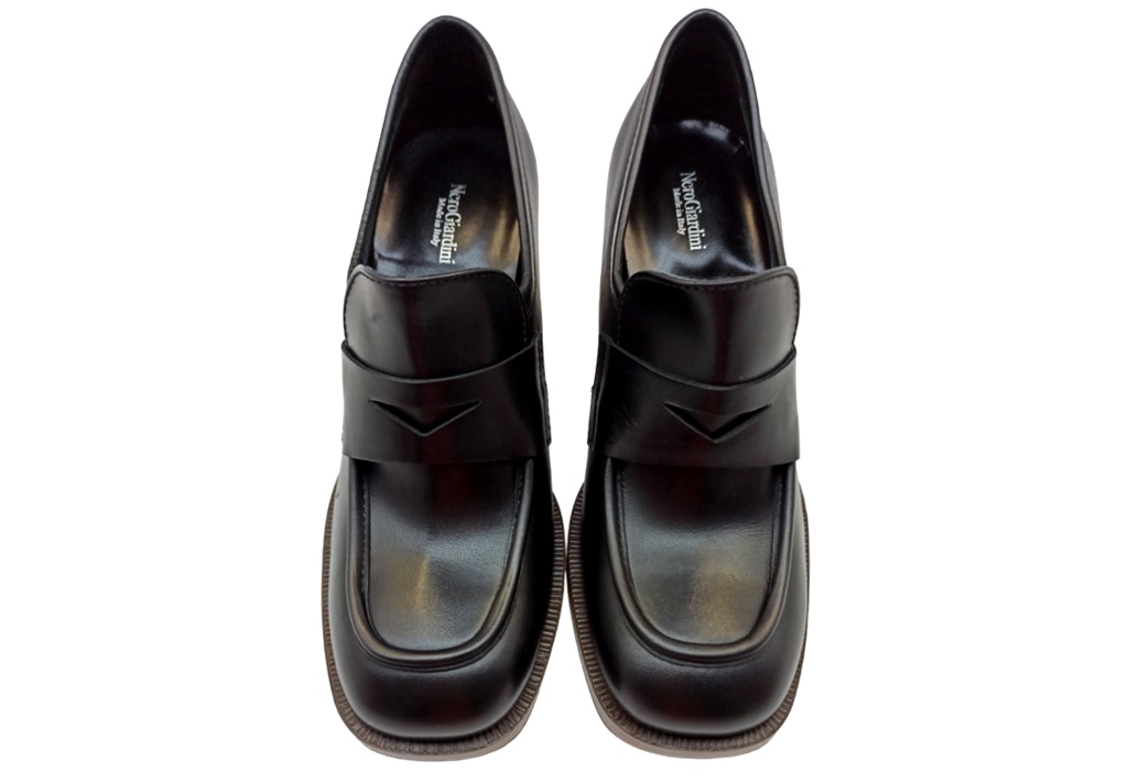 Scarpe da Donna Nero Giardini I308190D 100 Colore Nero Black. Eleganti mocassini in vera pelle, realizzati in Italia, con tacco medio da 8 cm e plateau da 1,5 cm. Modello casual-chic, perfetto per look glamour e di tendenza, ideali per passeggiate e per completare outfit autunnali e invernali. Comoda chiusura a infilare
