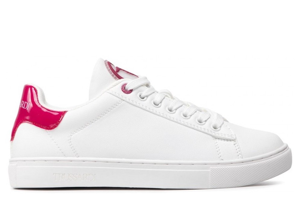 Scarpa da Donna Trussardi 79A00746 SNK DILAN Colore Bianco con profili fuxia (doppio set di lacci intercambiabili bianco e fuxia) Sneakers versatili e di tendenza, perfette per completare look casual e dinamici. Le Trussardi Dilan coniugano design contemporaneo e comfort, diventando la scelta ideale per ogni occasione quotidiana. Sneakers basse, leggere e confortevoliideali per il tempo libero, passeggiate e abbinamenti casual-sportivi. Tomaia in ecopelle di qualità, resistente e facile da pulire, adatte a tutte le stagioni – primavera, estate, autunno e inverno