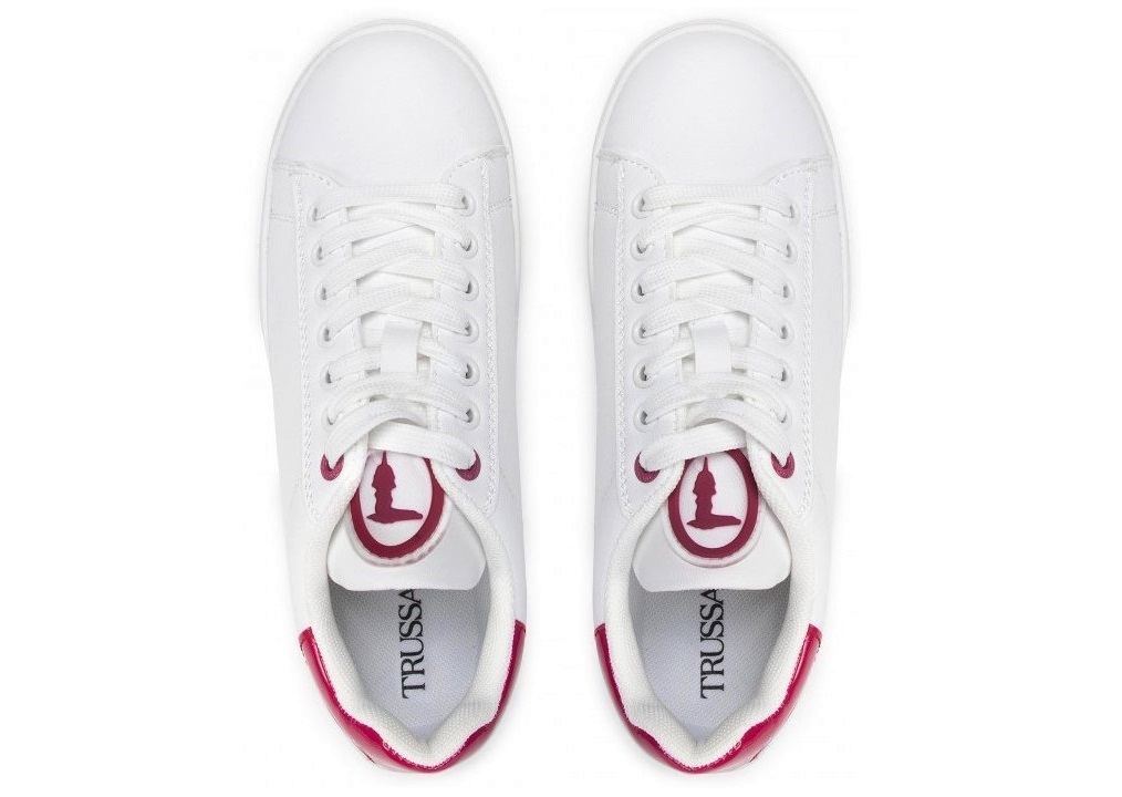 Scarpa da Donna Trussardi 79A00746 SNK DILAN Colore Bianco con profili fuxia (doppio set di lacci intercambiabili bianco e fuxia) Sneakers versatili e di tendenza, perfette per completare look casual e dinamici. Le Trussardi Dilan coniugano design contemporaneo e comfort, diventando la scelta ideale per ogni occasione quotidiana. Sneakers basse, leggere e confortevoliideali per il tempo libero, passeggiate e abbinamenti casual-sportivi. Tomaia in ecopelle di qualità, resistente e facile da pulire, adatte a tutte le stagioni – primavera, estate, autunno e inverno