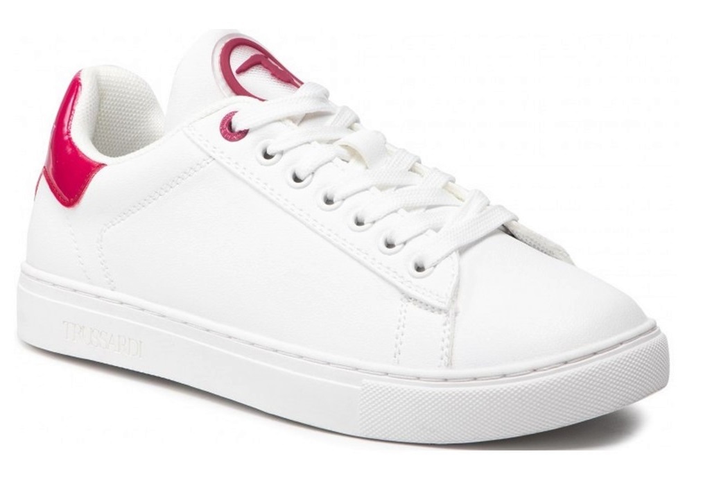 Scarpa da Donna Trussardi 79A00746 SNK DILAN Colore Bianco con profili fuxia (doppio set di lacci intercambiabili bianco e fuxia) Sneakers versatili e di tendenza, perfette per completare look casual e dinamici. Le Trussardi Dilan coniugano design contemporaneo e comfort, diventando la scelta ideale per ogni occasione quotidiana. Sneakers basse, leggere e confortevoliideali per il tempo libero, passeggiate e abbinamenti casual-sportivi. Tomaia in ecopelle di qualità, resistente e facile da pulire, adatte a tutte le stagioni – primavera, estate, autunno e inverno