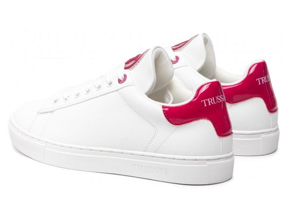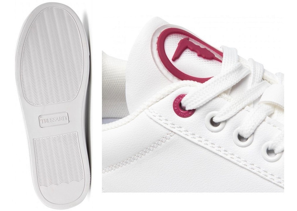 Scarpa da Donna Trussardi 79A00746 SNK DILAN Colore Bianco con profili fuxia (doppio set di lacci intercambiabili bianco e fuxia) Sneakers versatili e di tendenza, perfette per completare look casual e dinamici. Le Trussardi Dilan coniugano design contemporaneo e comfort, diventando la scelta ideale per ogni occasione quotidiana. Sneakers basse, leggere e confortevoliideali per il tempo libero, passeggiate e abbinamenti casual-sportivi. Tomaia in ecopelle di qualità, resistente e facile da pulire, adatte a tutte le stagioni – primavera, estate, autunno e inverno