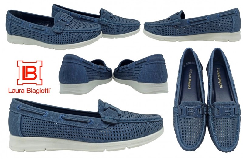 Scarpe da Donna Mocassini Laura Biagiotti 8469 Colore Blu e Beige Tacco Basso 2,3 cm Impreziositi con fibbia centrale Casual Eleganti Sportivi Alla Moda da Passeggio di Tendenza Glamour Tomaia in Ecopelle Traforata Interno con Morbido Cuscinetto per un Comfort Ideale Chiusura da infilare Slip On Primavera Estate Autunno