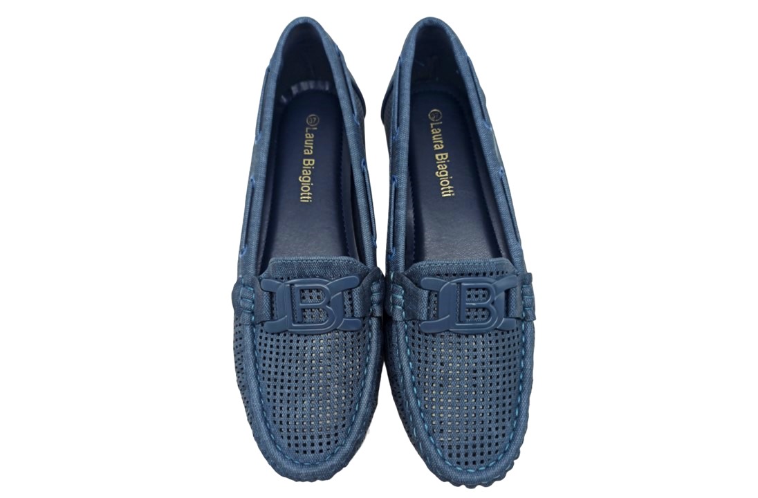 Scarpe da Donna Mocassini Laura Biagiotti 8469 Colore Blu e Beige Tacco Basso 2,3 cm Impreziositi con fibbia centrale Casual Eleganti Sportivi Alla Moda da Passeggio di Tendenza Glamour Tomaia in Ecopelle Traforata Interno con Morbido Cuscinetto per un Comfort Ideale Chiusura da infilare Slip On Primavera Estate Autunno