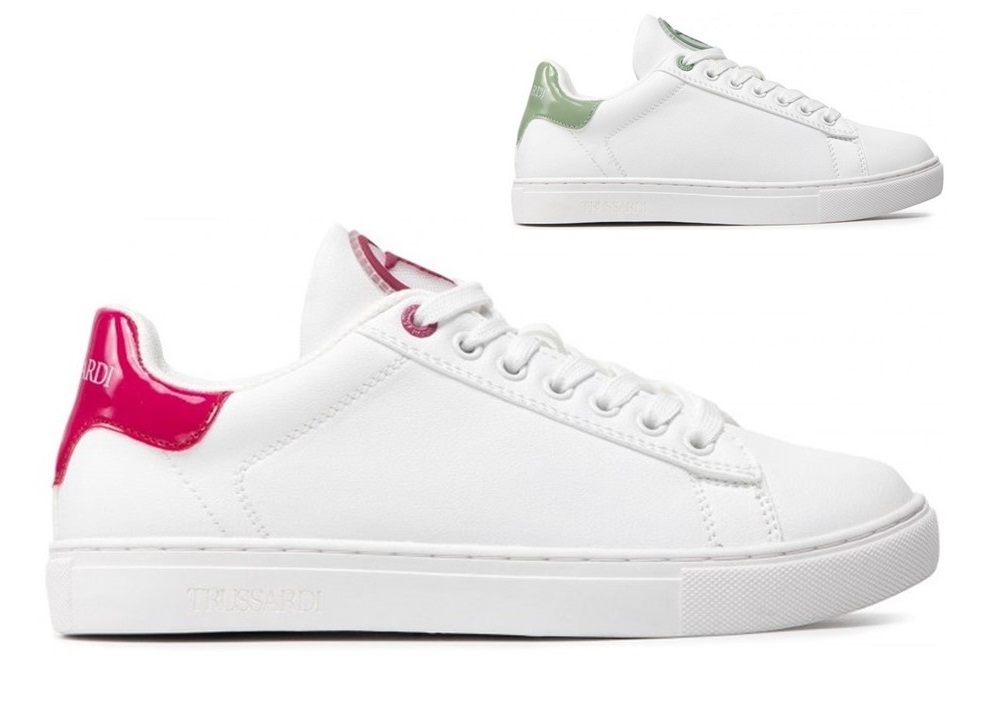 Scarpa da Donna Trussardi 79A00746 SNK DILAN Colore Bianco con profili verdi e Bianco con profili fuxia Sneakers Comoda e Leggera alla Moda per il Tempo Libero da Passeggio Casual Sportiva Bassa di Tendenza Tomaia In EcoPelle Chiusura con Stringhe Lacci Primavera Estate