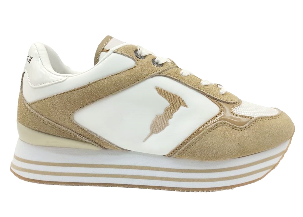 Scarpe da donna Trussardi 79A00646 - 79A00541 Beige Bianco Nero Sneakers Platform Sportive Basse Casual Comode alla Moda Glamour da Passeggio per il Tempo Libero con Plantare Estraibile Pelle Camoscio Scamosciato Tela Chiusura con Lacci Stringhe Primavera Estate