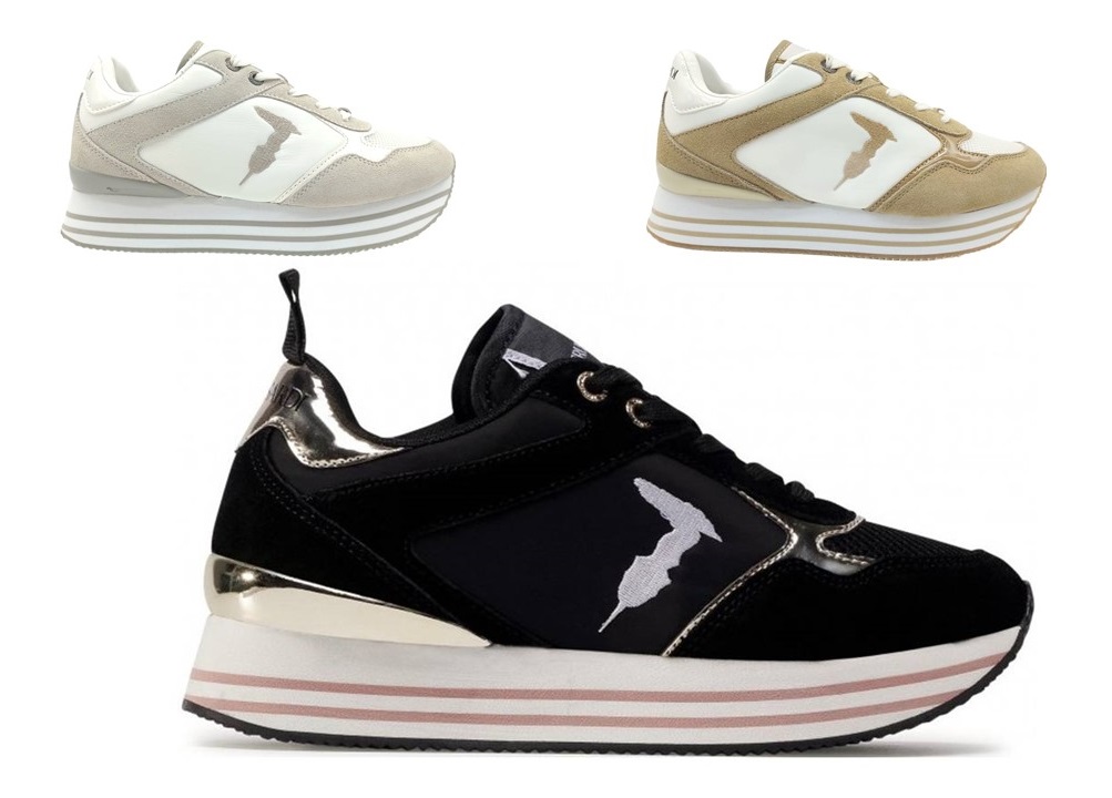 Scarpe da donna Trussardi 79A00646 - 79A00541 Beige Bianco Nero Sneakers Platform Sportive Basse Casual Comode alla Moda Glamour da Passeggio per il Tempo Libero con Plantare Estraibile Pelle Camoscio Scamosciato Tela Chiusura con Lacci Stringhe Primavera Estate