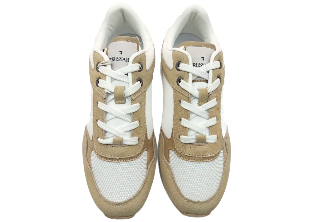 Scarpe da donna Trussardi 79A00646 - 79A00541 Beige Bianco Nero Sneakers Platform Sportive Basse Casual Comode alla Moda Glamour da Passeggio per il Tempo Libero con Plantare Estraibile Pelle Camoscio Scamosciato Tela Chiusura con Lacci Stringhe Primavera Estate