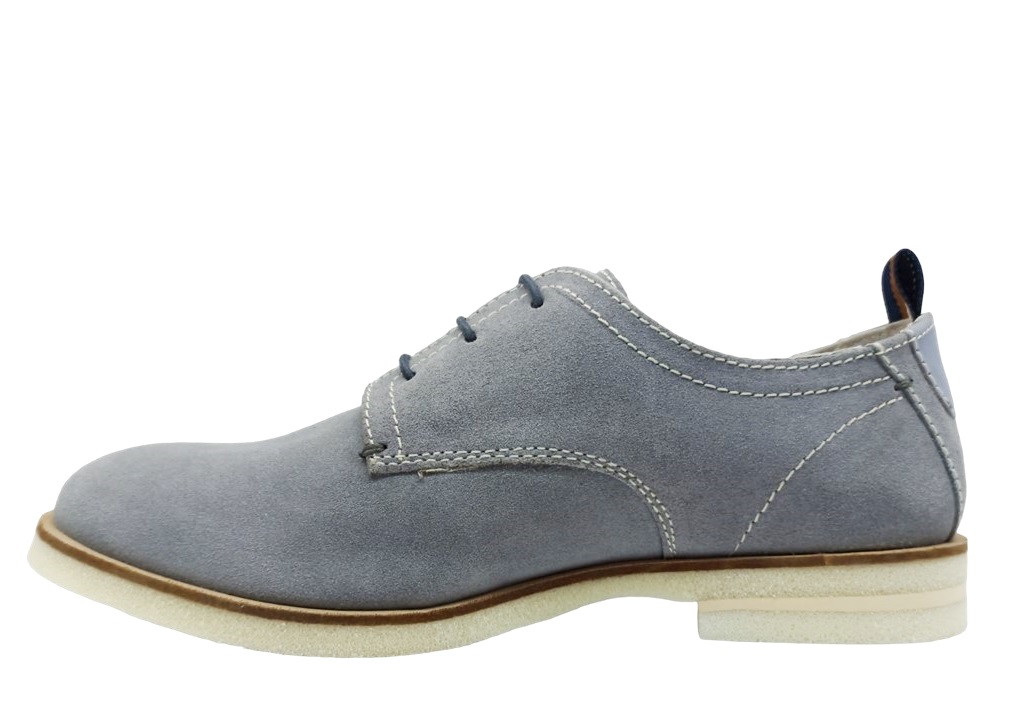 Scarpe da uomo Lumberjack ALVISE SMG9404-001 A01, colore grigio con riflessi azzurri. Modello inglesine derby oxford basse, stringate in pelle scamosciata. Eleganti e leggere, ideali per cerimonia o uso casual. Dotate di soletta e plantare in pelle, perfette per le stagioni primavera, estate e autunno.