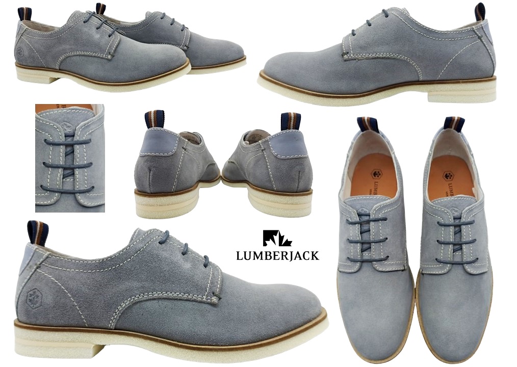 Scarpe da uomo Lumberjack ALVISE SMG9404-001 A01, colore grigio con riflessi azzurri. Modello inglesine derby oxford basse, stringate in pelle scamosciata. Eleganti e leggere, ideali per cerimonia o uso casual. Dotate di soletta e plantare in pelle, perfette per le stagioni primavera, estate e autunno.