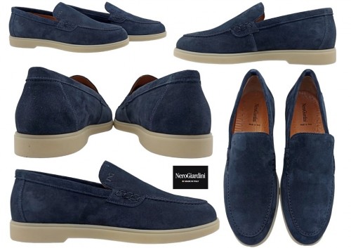Scarpa da Uomo Nero Giardini E302795UE 352 - E302795UE 207 Colore Beige Blu Mocassino Casual Elegante Comodo per Cerimonia Tempo Libero da Passeggio in Vera Pelle Scamosciata da Infilare Slip On con Soletta Interna Estraibile in Pelle per un Miglior Confort Made in Italy Primavera Estate