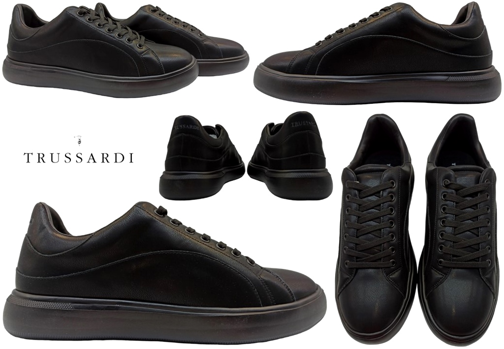 Scarpe da Uomo Trussardi 77A00537 W717 SNK YRIAS FX NAPPA Colore Nero Pelle Sneakers Moderne e di Tendenza alla Moda da Passeggio Platform Comode Sportive Basse Chiusura con Lacci Stringhe Realizzate in Similpelle liscia con Plantare Interno Estraibile Autunno Inverno